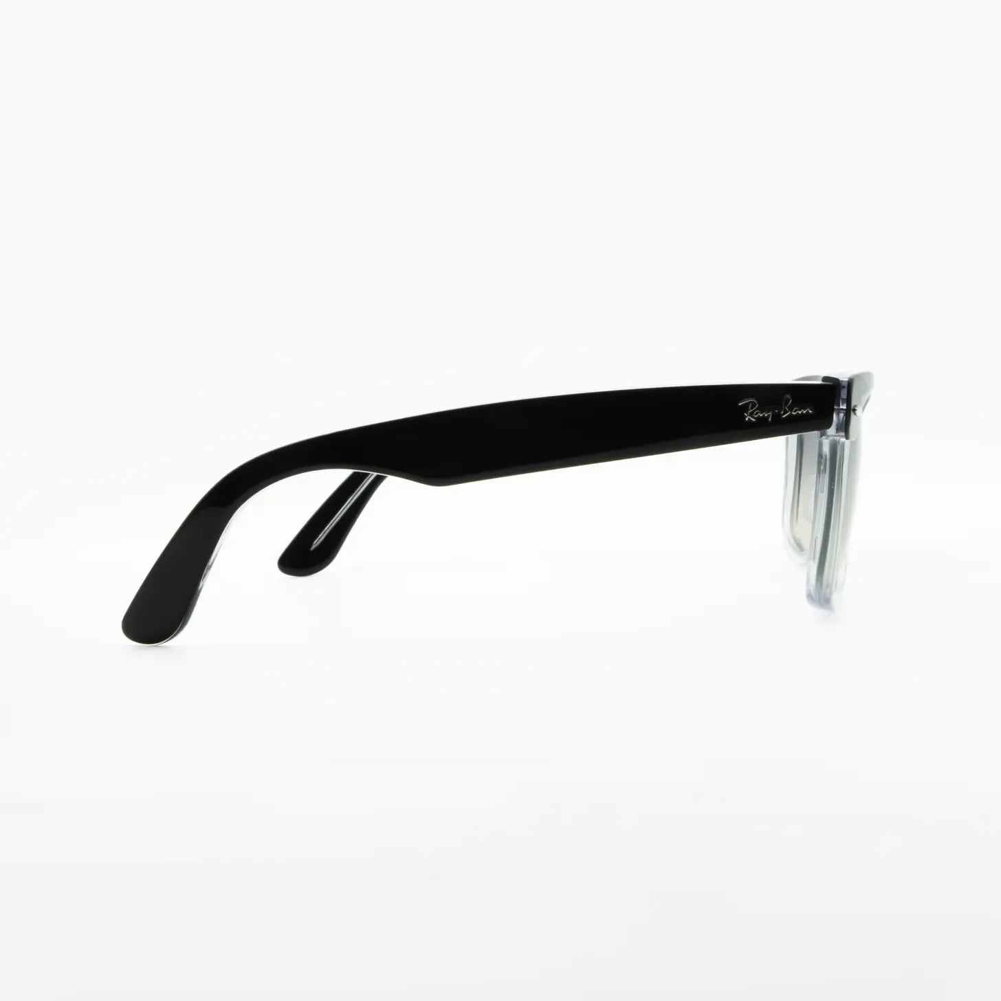 The Ray-Ban Wayfarer Street Neat combines a glossy black frame on a transparent base with grey gradient lenses, for a modern and distinctive style that will not go unnoticed.